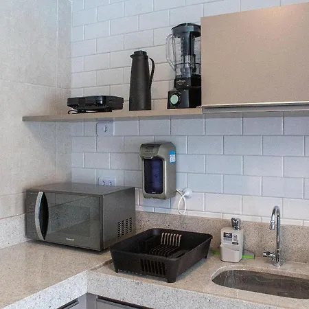 O Porto Blue #202 - Flat confortável por Carpediem dispõe de cozinha totalmente equipada para auto-atendimento.